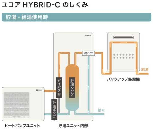 →ガスと電気(ヒートポンプ)を組み合わせた省エネ給湯システム